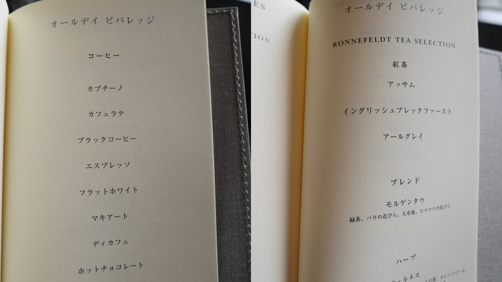コーヒーなどのカフェメニューは