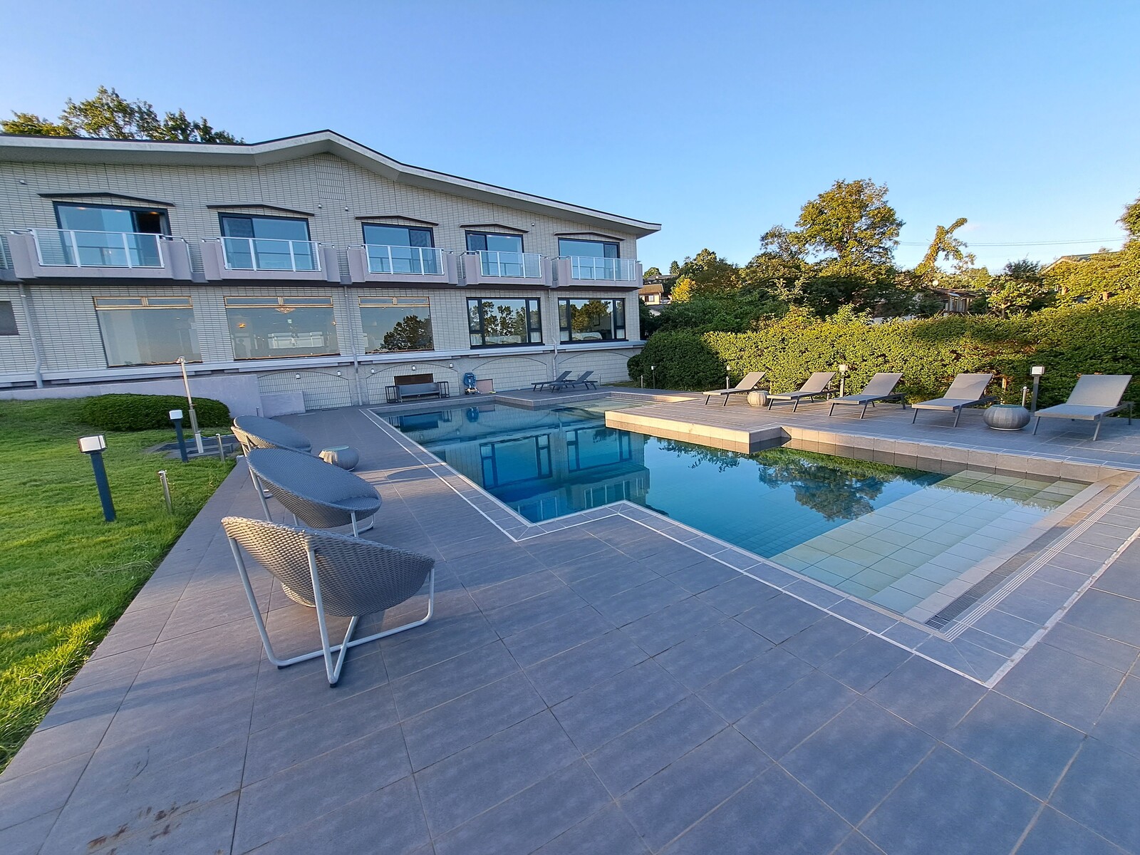 プールを眺めつつ