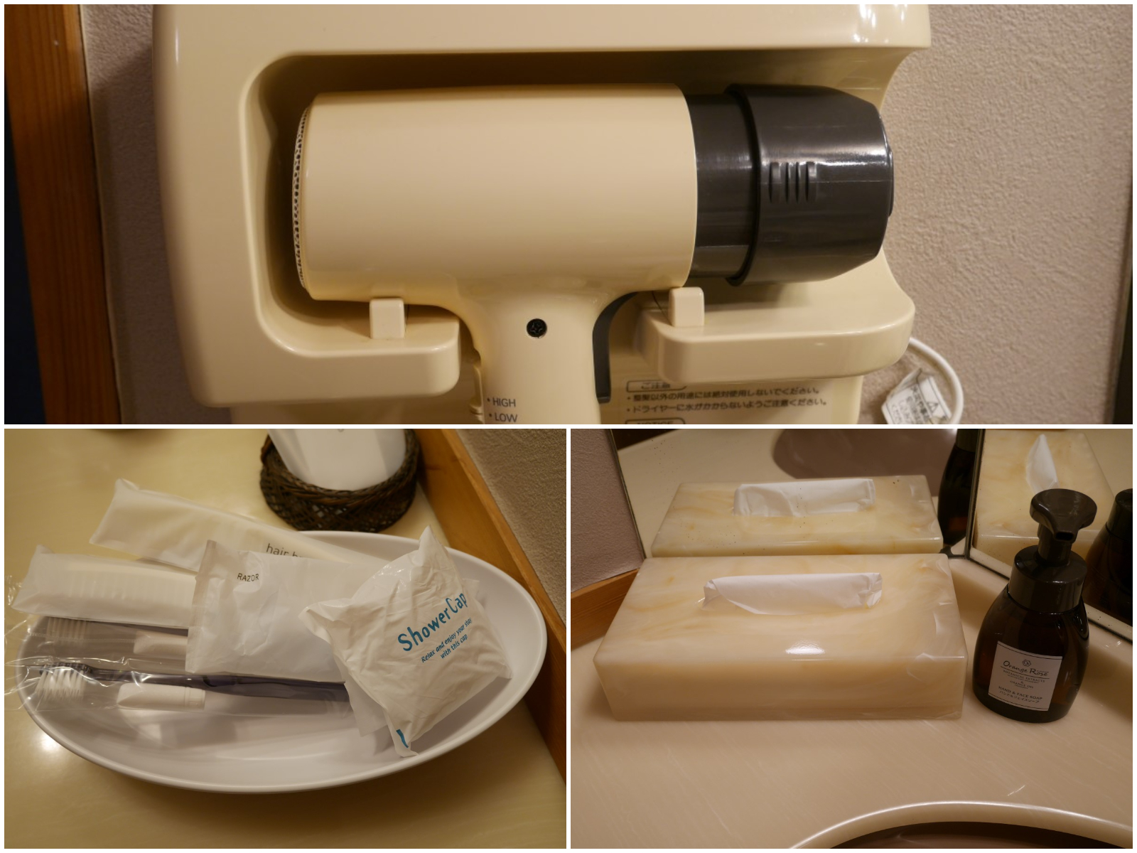 ドライヤーは非力な壁掛けタイプ
