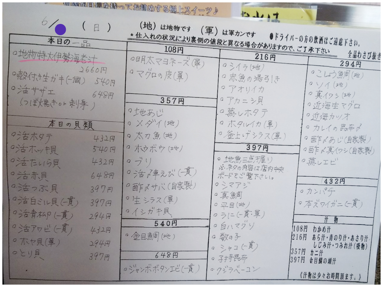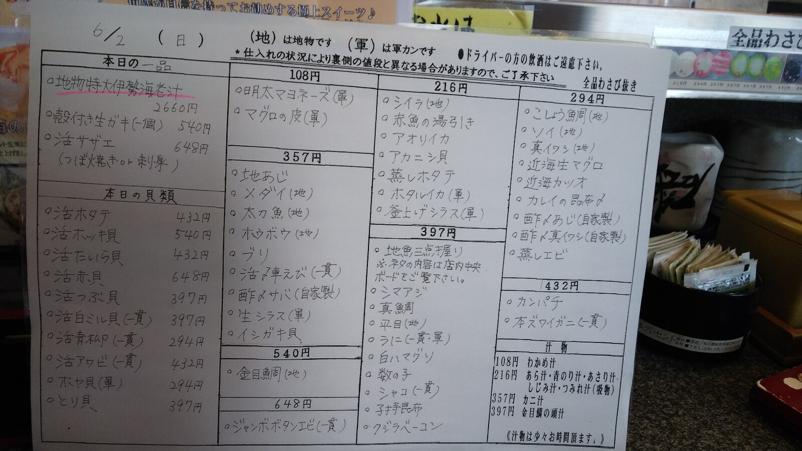 店頭にメニューがあるので